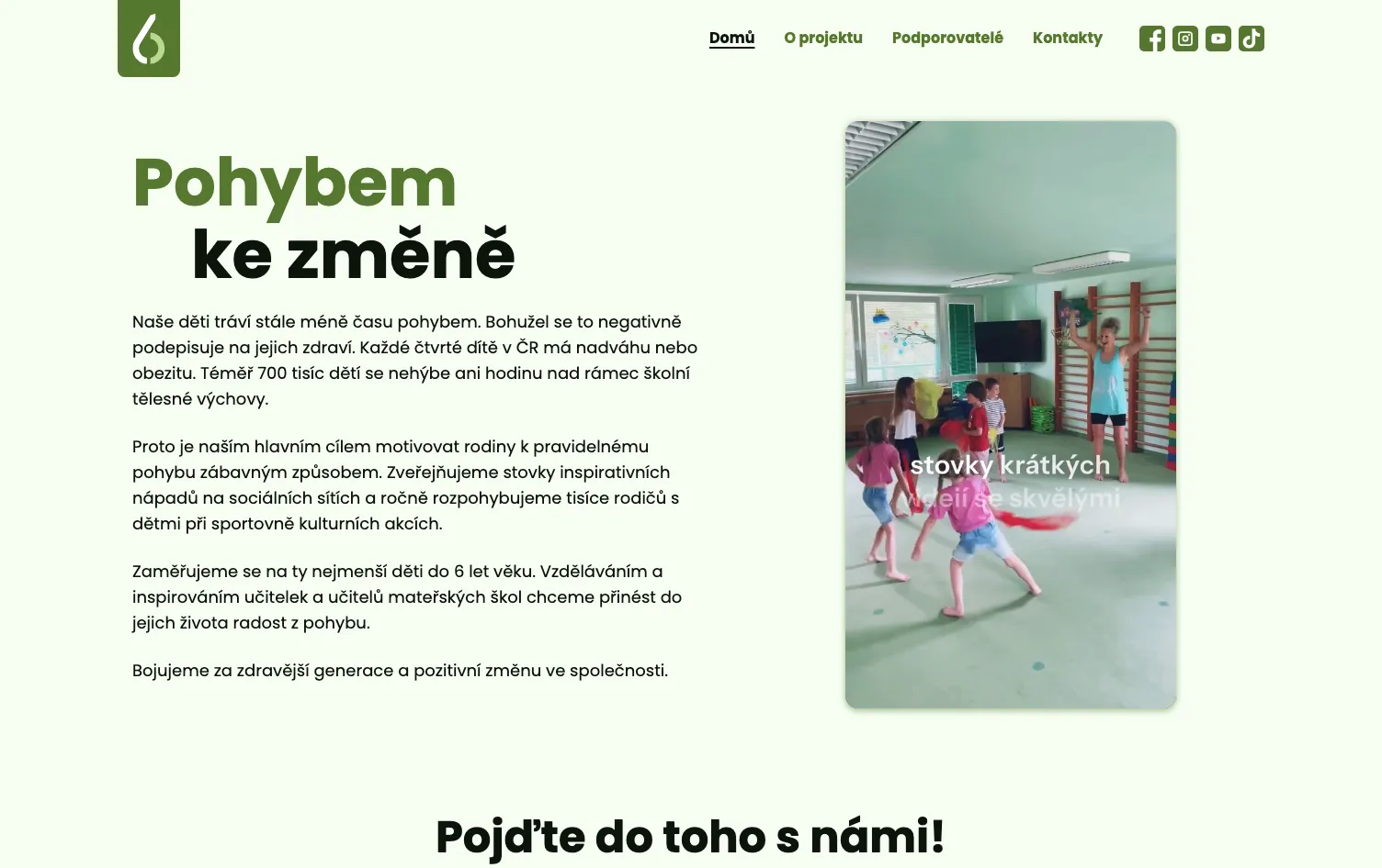 A website for 6 HODIN — an initiative that promotes children’s health through movement. The idea is simple: kids should move at least 6 hours a week. The site helps parents find sports events and activities for their families.
